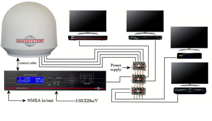 Quando si possono presentare problemi di ostacoli tra antenna e satellite il kit di commutazione tra due antenne assicura una visione senza interruzioni, anche se si vogliono ricevere due satelliti diversi contemporaneamente. Lo scambio tra una antenna e l’altra avviene automaticamente appena una delle due perde il segnale, ma è possibile impostare lo scambio anche in modalità manuale o a priorità nei casi in cui lo si preferisca.